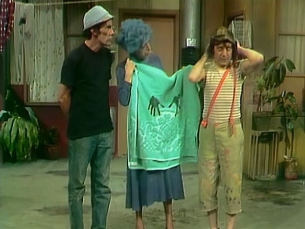 Curiosidades: Este episódio estreou no SBT em 1984 e saiu do ar em 1986. E quase foi exibido em 2003! Para anunciar uma das sessões de Chaves Especial, que era exibido aos sábados, antes da Praça é Nossa, no começo da década de 2000, o SBT exibiu em um comercial várias cenas da versão de 1975, que na época era um episódio perdido. Porém, exibiram a versão de 1979, que era exibida normalmente pelo canal da Anhanguera. Chiquinha passa a usar seu vestido verde neste episódio. (Texto adaptado do original de James Revolti)